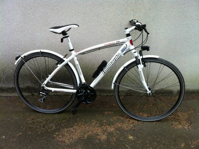 Blanc, garde boue, lumires, tat neuf, anti vol fourni, pneu fin.