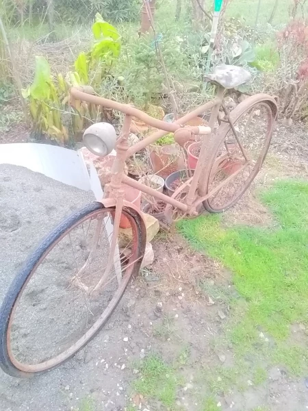 Vieux vlo sortie de la grange poigne en bois restauration a prvoir conviendrait a collectionneurs
