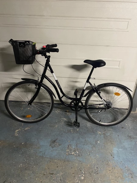 Vends joli vlo de femme avec ses accessoires , Panier modulable , poigne confort , garde-boue avant et arrire , et sonnette . Le vlo est servi deux fois .