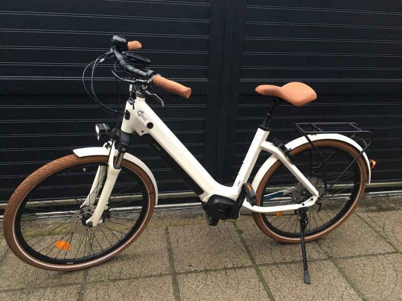 Couleur blanc lin, lgant et polyvalent, vlo lectrique idal pour la ville